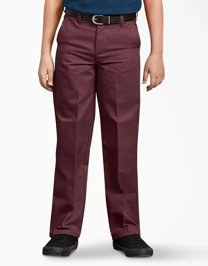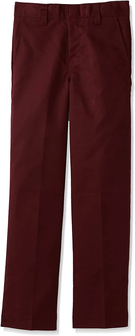 - Flat front with hook & eye closure, zipper, reinforced kneeÂ